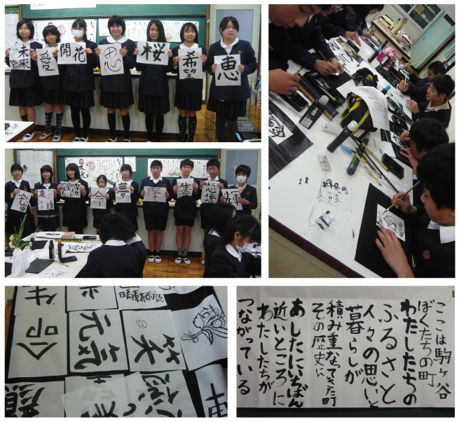 大阪府羽曳野市立駒ヶ谷小学校6年生〈リレー書道・ぶどう/ここは